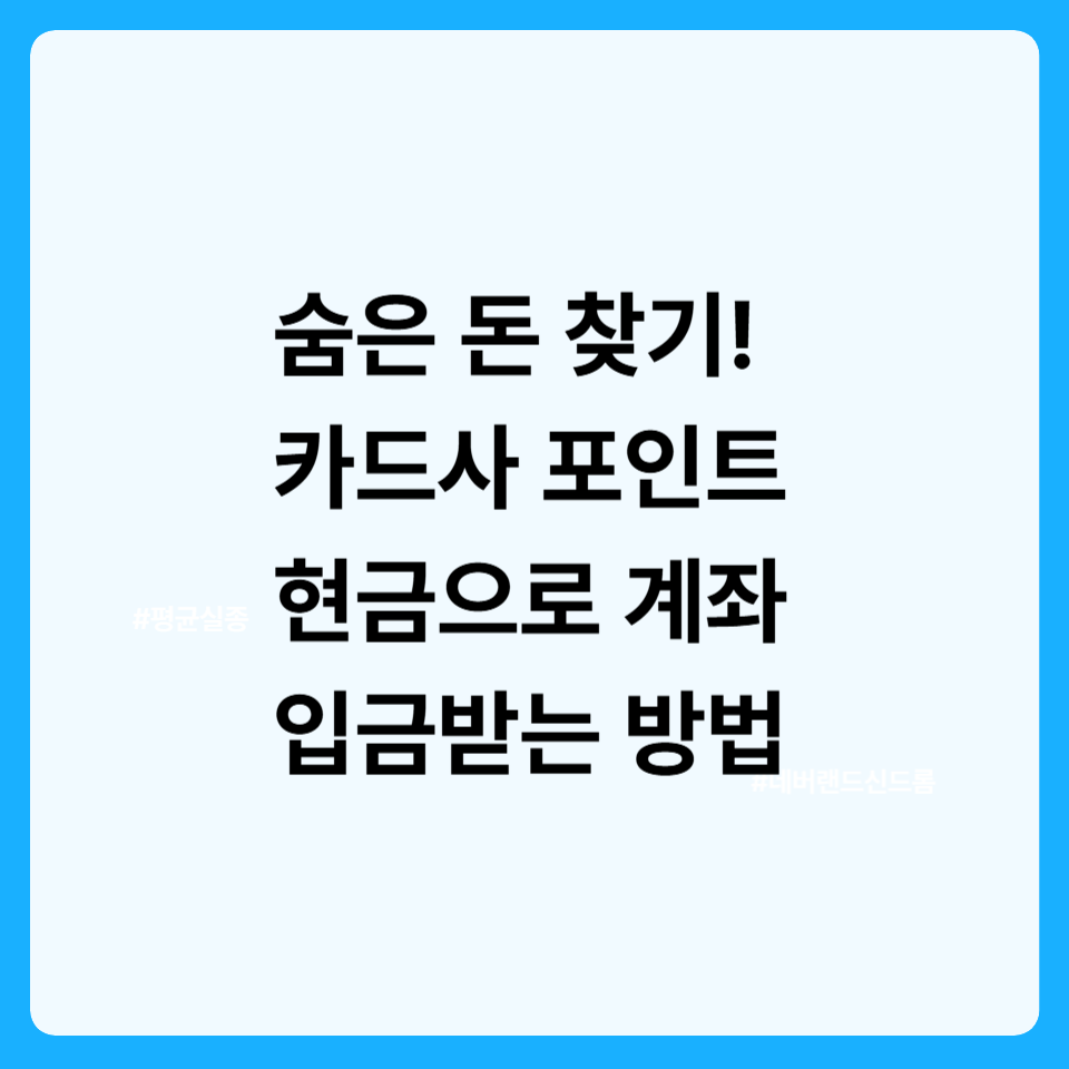 숨은 돈 찾기! 카드사 포인트 현금으로 계좌 입금받는 방법