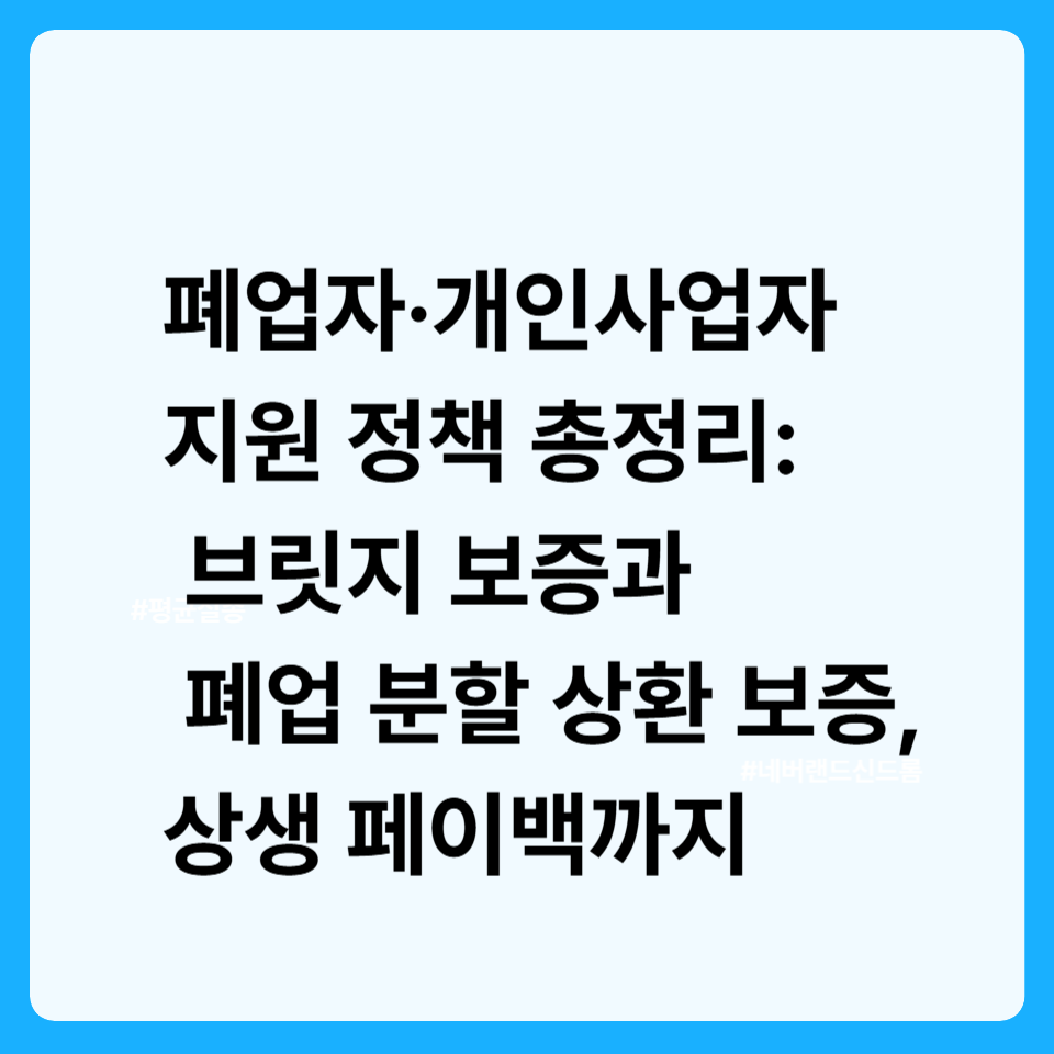 폐업자·개인사업자 지원 정책 총정리: 브릿지 보증과 폐업 분할 상환 보증, 상생 페이백까지
