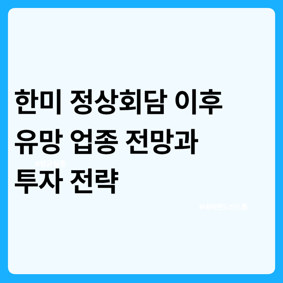 한미 정상회담 이후 유망 업종 전망과 투자 전략