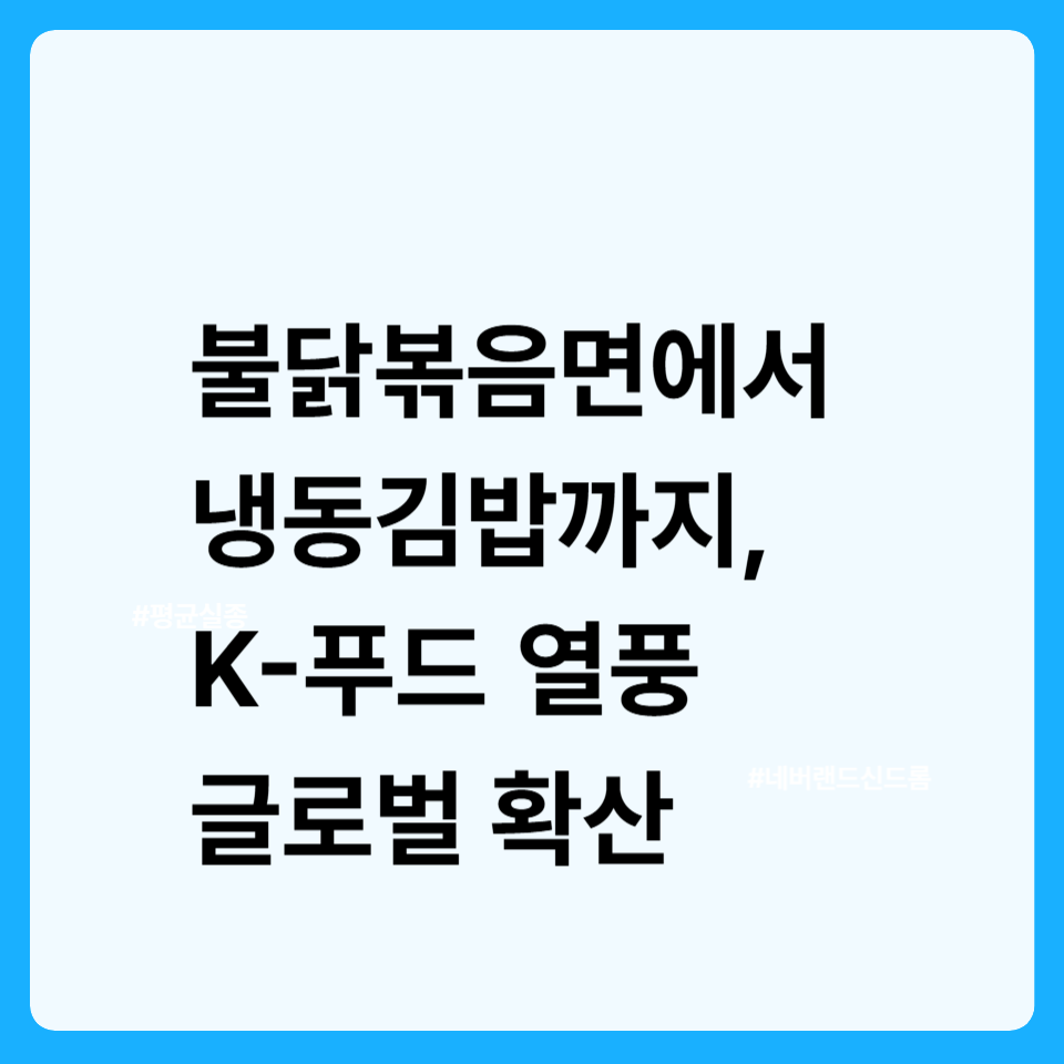 👉 정리하자면, 삼양 불닭볶음면의 성공은 단순히 ‘라면’이 아닌 글로벌 문화 콘텐츠로 진화한 결과입니다. 앞으로는 김밥·김 스낵·소주 등 다양한 K-푸드가 글로벌 무대에서 새로운 성장 동력으로 자리 잡을 것으로 기대됩니다.
